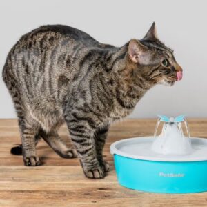 Just as it is for us, drinking enough water is essential for our cats’ health. Proper hydration can keep your cat comfortable and happy by helping to prevent common cat health issues like urinary tract infections and kidney disease. Many cats are picky about the water they drink. If you’ve ever caught your cat sipping from the sink or pawing at her water bowl, chances are she prefers moving water. This is a common and natural preference among cats! You can give your cat the fresh, flowing water she prefers and encourage her to drink, boosting her hydration, with a pet fountain.
