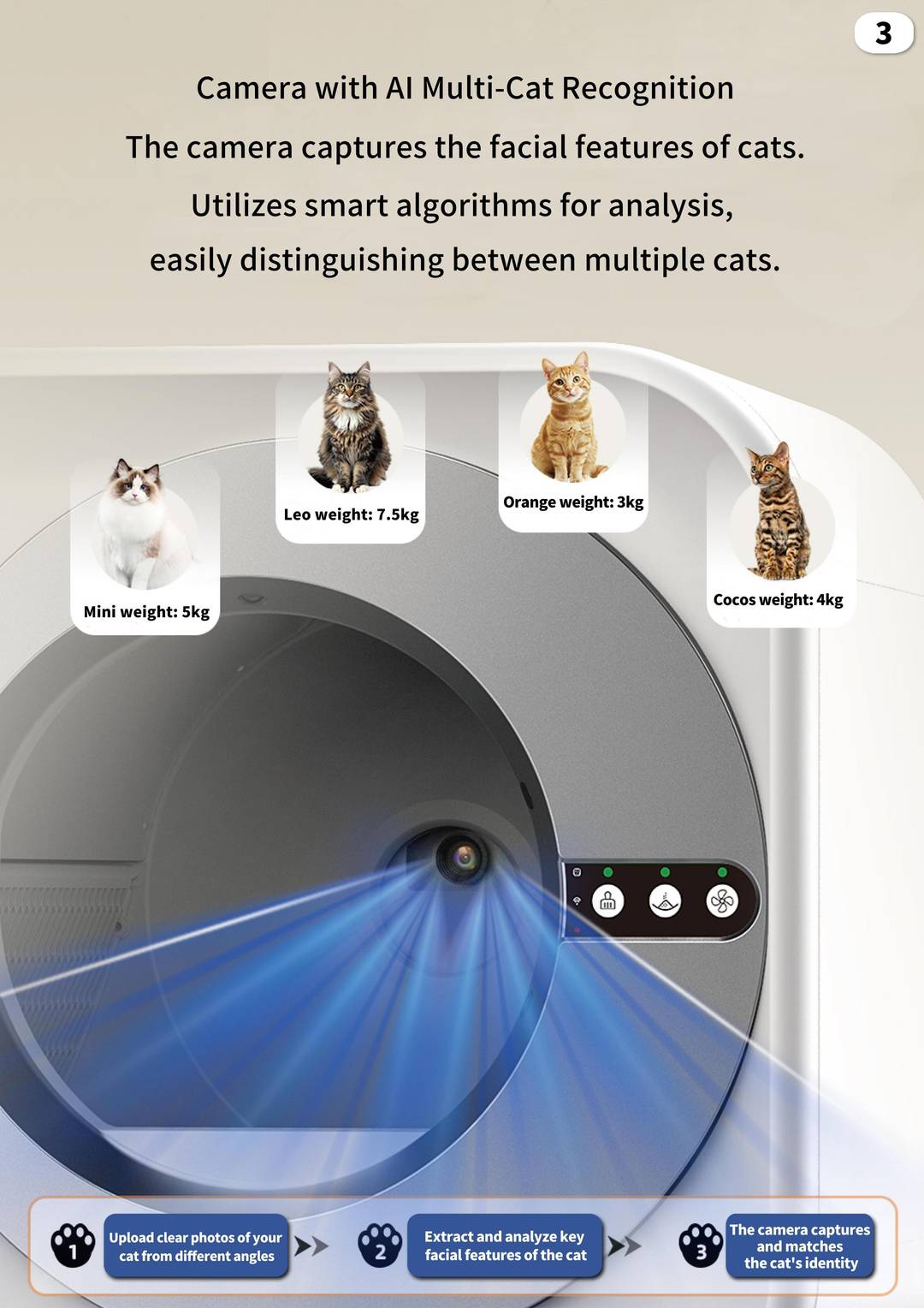 Multi-Cat Recognition: Utilizes weight sensing to identify and monitor the health of multiple cats.