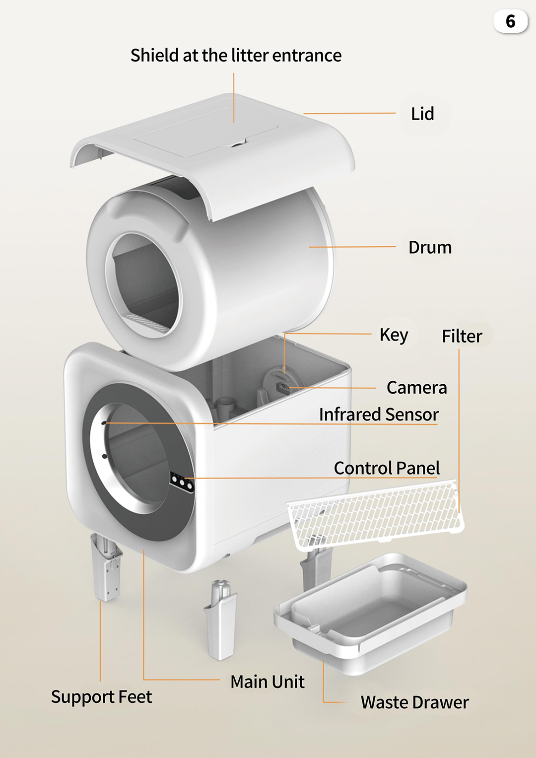 Waste Drawer: Washable for easy cleaning.