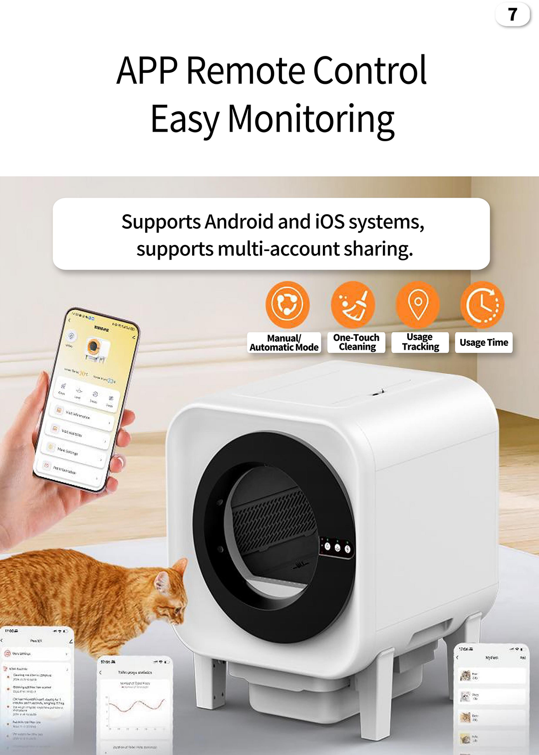 Convenience: One-touch litter change, easy and mess-free; litter leveling correction function.
